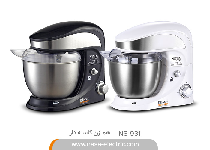 همزن ناسا الکتریک NS-931 یکی از همزنهای کاسه دار حرفهای است. این محصول با کیفیت و کاربردی به واسطه داشتن کاسه، از کارآیی راحتی برخوردار میباشد. کاسه این همزن گنجایش 4 لیتر را داشته و از این جهت برای تهیه انواع شیرینی و کیک برای جمعیتهای بالای 6 نفر مناسب میباشد. موتور قدرتمند این محصول دارای توان 800 وات بوده، که برای مخلوط نمودن و هم زدن انواع مواد غذایی به کار میرود. از ویژگیهای برجسته همزن ناسا الکتریک 931 مربوط به قابلیت تنظیم سرعت آن است. این قابلیت از طریق پیچ ولومی تعبیه شده بر روی بدنه اعمال میشود.