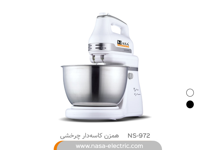 همزن کاسه دار ناسا الکتریک مدل NS-972 از همزنهای حرفهای برند ناسا الکتریک است، که از امکانات بسیار مطلوبی بهره میبرد. همزن برقی ناسا الکتریک با توان 800 وات امکان مخلوط کردن انواع خمیر و مایعات و تهیه مواد اولیه آشپزی و ... را فراهم آورده است. همزن کاسه دار NS-972 ناسا الکتریک دارای کاسهای از جنس استیل میباشد، که نیاز به در دست گرفتن همزن را از بین برده است. یک دکمه کشویی بر روی دسته همزن قرار دارد که از خاموش شدن گرفته تا پنج سرعت مختلف را پشتیبانی می کند.