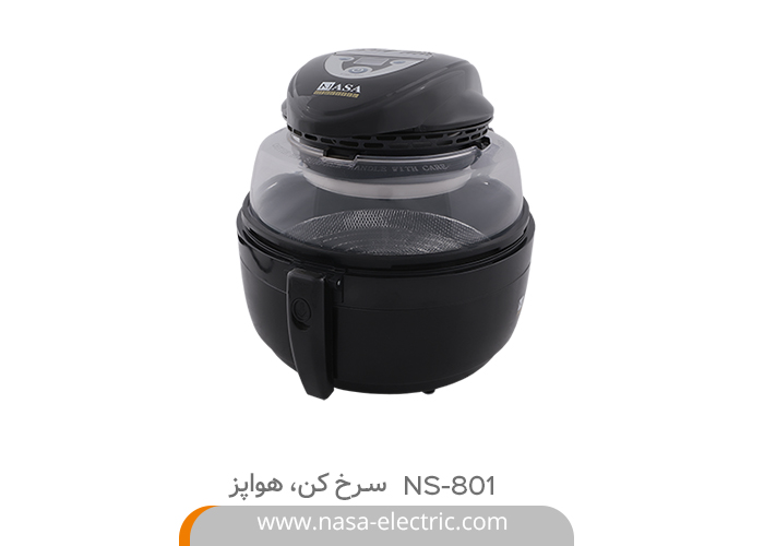سرخ کن-هواپز ناسا الکتریک NS-801 یکی از سرخکنهای با کیفیتی است که به عنوان سرخ کن هواپز نیز شناخته میشود. این محصول با پخت چرخشی قابلیت پخت غذاهای متداول خانگی با روش سالم و رژیمی را دارد. حرارت دهی بسیار خوب این دستگاه از طریق امواج مادون قرمز هالوژن به همراه فن گردان هوا این امکان را به شما می دهد تا مواد غذایی کاملا پخته شود. این سرخ کن هواپز دارای حداکثر توان مصرفی 1000 وات بوده که به همراه فن و المنتهای تعبیه شده و جریان چرخش سریع هوای گرم، امکان پخت یکنواخت مواد غذایی را فراهم آورده است.