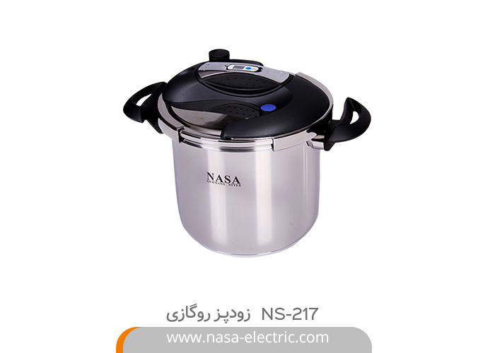 زودپز روگازی ناسا الکتریک NS-217 یکی از زودپزهای با کیفیتی است که برای پخت و پز به کار میرود و به عنوان قابلمه استفاده میشود. در واقع این زودپز روگازی دارای ظرفیت 6 لیتری است و این ظرفیت بالا به معنای کاربردی بودن این زودپز میباشد. در واقع با کمک این زودپز میتوان غذای مورد نیاز 12 نفر را تهیه کرد. بدنه زودپز روگازی از جنس استیل با ترکیب 18/10 بوده که شفافیت بسیار بالایی دارد. این ترکیب که به میزان و درصد نیکل و کروم در ساختار بدنه زودپز اشاره میکند، که ظاهری صیقلی و آینهای به بدنه زودپز بخشیده است. دربی که بر روی زودپز قرار گرفته است دارای سوپاپ کنترل فشار میباشد و از خطرات احتمالی ناشی از تجمع بخار داخل زودپز جلوگیری میکند. البته به همراه این زودپز یک درب شیشهای نیز عرضه میشود، که امکان استفاده از زودپز را به جای قابلمه فراهم آورده است. دستیگرههایی که در این زودپز تعبیه شدهاند عایق حرارت و گرما بوده و مانع از انتقال حرارت و گرما به دست میشوند.