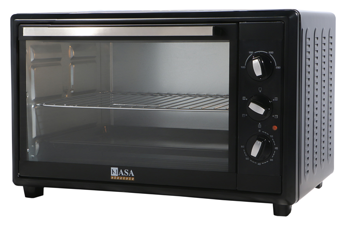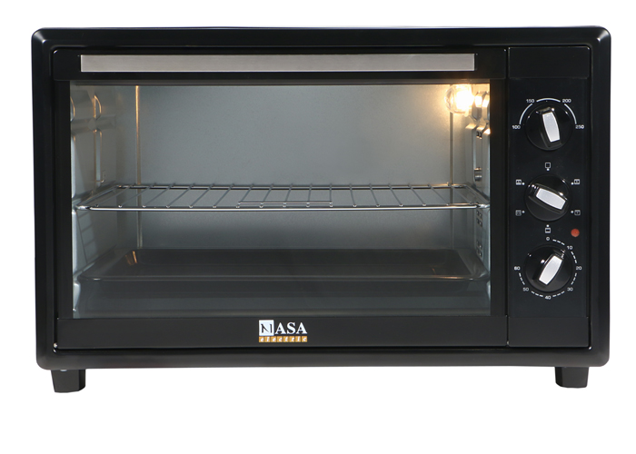 آون توستر ناسا الکتریک مدل NS-2045 محفظه ای با ظرفیت 45 لیتر همراه با جوجه گردان دارد و به کمک سینی مخصوص و قفسه سیمی آن می توانید با جایگذاری در 6 وضعیت انواع مواد غذایی را گریل و کباب نمایید. می توانید سینی را مطابق غذایی که مایل به پخت آن هستید در چهار جایگاه مختلف قراردهید. عملکرد کانوکشن به شما کمک می کند تا با گردش هوای گرم درون محفظه فرآیند پخت بهتر و سریع تر انجام گردد، در محفظه داخلی چهار المنت حرارتی از جنس استیل به صورت دو المنت در بالا و دو المنت در پایین قرار گرفته اند و با داشتن چراغ داخلی از طریق درب شیشه ای دستگاه نیز می توان بر مراحل پخت غذا نظارت داشت درب آون توستر ناسا الکتریک مدل NS-2045به سهولت تا زاویه 90 درجه باز می شود.