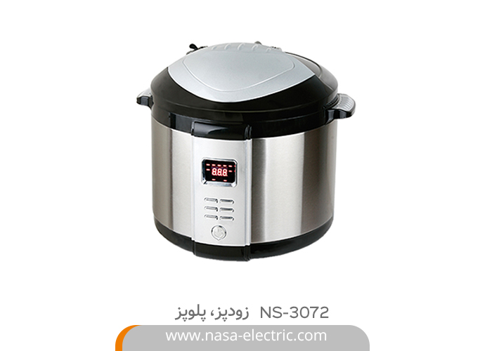 زودپز ناسا الکتریک NS-3072 یکی از دستگاههای کاربردی است، که به منوظر سرعت بخشیدن به کارهای آشپزی طراحی شده است. این زودپز برقی دارای توان مصرفی 1000 وات بوده و دیگچه پخت آن ظرفیت 6 لیتری دارد. ظرفیت بالای این زودپز امکان استفاده از آن را برای گروهها و جمعیتهای بالای 10 نفره فراهم خواهد آورد. دیگچه یا همان قابلمه در این زودپز از جنس آلومنیوم با پوشش سرامیکی نچسب است، که پخت و پز را راحتتر نموده است. بدنه این زودپز از جنس استیل ضد زنگ است، که با پلاستیک مرغوب ترکیب شده و نهایت کیفیت و زیبایی را به ارمغان آورده است. کارآیی راحت این زودپز باعث شده تا هر کاربری بدون نیاز به دانش خاصی از آن استفاده نماید. در واقع تمام چیزی که برای تنظیم نمودن زودپز در نظر گرفته شده، چند دکمه برای تنظیم زمان و برای انتخاب نو غذا یا ظرف و دکمه زمان سنج و ... است. از دیگر امکانات این زودپز چند کاره میتوان به سوپاپ اطمینان برای تخلیه بخار اضافی و سیستم گرم نگهدارنده اشاره کرد.