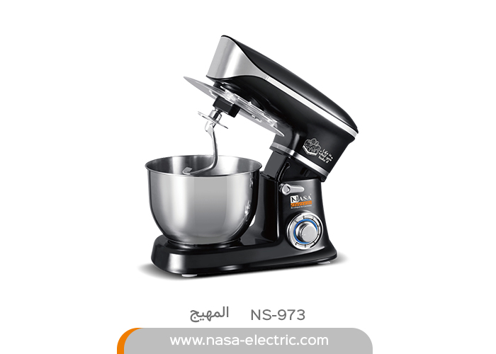 المهيج NS-973 قوة 1300 واط لديه 6 درجات من السرعة السلطانيات مصنوعة من الفولاذ المقاوم للصدأ بسعة 6/5 لتر تحتوي على آلة تحريك وعجين يمكن فصلها عن الماكينة مؤشر LED قاعدة مضادة للانزلاق