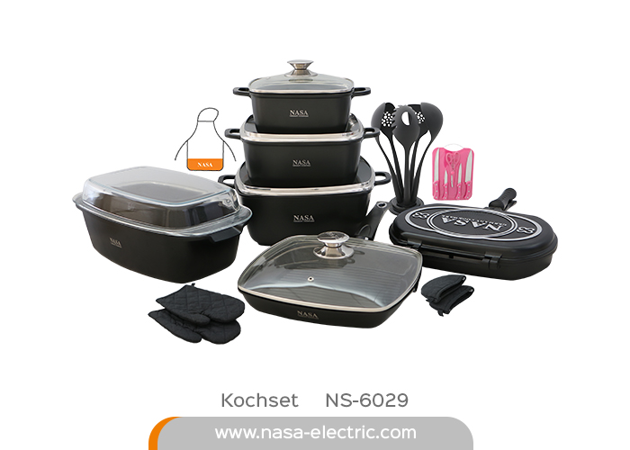3 Töpfe in den Größen 20-24-28 cm und 1 Auflauf 28 cm