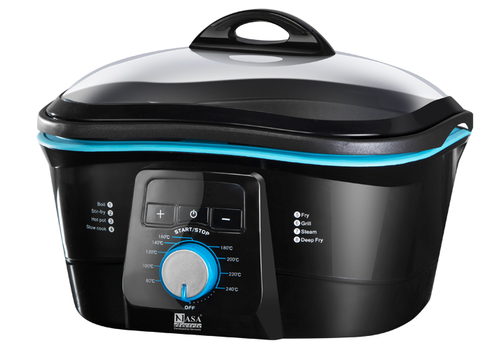 مولتر کوکر یا همان سرخ کن هواپز ناسا الکتریک NS-805 دستگاهی چند کاره و حرفهای است که برای پخت و پز به کار میرود. این دستگاه کارکردهای متنوعی دارد و جای چندین دستگاه را در آشپزخانه برای شما پر خواهد کرد. از قابلیتها و کارآییهای مولتی کوکر NS-805 میتوان به سرخ کردن با روغن زیاد، سرخ کردن با هم زدن مواد، گریل، بخارپز کردن، آرام پز کردن، پلوپز، جوشاندن، گرم کردن و ... اشاره کرد. این محصول به دلیل این همه کاربردی که دارد به دستگاه چند کاره معروف شده است و از محبوبیت زیادی برخوردار است. توان مصرفی دستگاه 1500 وات بوده که قدرت و سرعت بسیار بالایی در انجام کارهای سنگین آشپزی دارد. علاوه بر توان بالا از قابلیت تنظیم درجه حرارت و مدت زمان پخت نیز برخوردار میباشد، که با استفاده از دکمه گردان و دکمه های مخصوص میتوان درجه حرارت را از 80 تا 220 درجه سانتیگراد و مدت زمان را حداکثر تا 9 ساعت و 59 دقیقه تنظیم نمود.