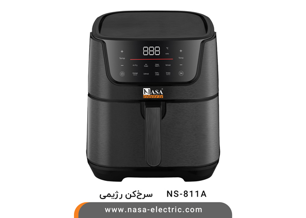 سرخکن رژیمی بدون روغن مدل ۸۱۱A ناسا الکتریک پیشنهادی فوق العاده برای سرخ کردن غذاهای شما در شرایط سالم تر و با حداقل مقدار چربی و کالری است و میتوانید بدون نگرانی از سلامتی خود غذاهای سرخ کردنی را به روش غیر مضر میل کنید. سرخ کن رژیمی مدل ۸۱۱ با توان ۱۸۵۰ وات، ۸ برنامه غذایی پیش فرض و قابلیت تنظیم دما و زمان برای شما شرایط بسیار خوب را فراهم کرده که فقط با گردش سریع هوا و حرارت زیاد غذایتان بدون استفاده از روغن پخته شود همچنین بافت داخل غذا نرم و بافت بیرون آن ترد پخته می شود.