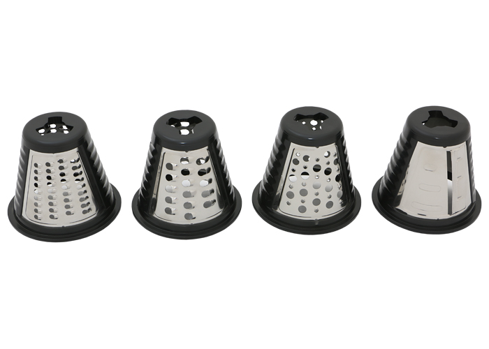 نوع و تعداد صفحات رنده در این نوع رنده برقی از تنوع بالایی برخوردار میباشد. در این رنده برقی 4 نوع استوانه یا همان رنده دیده میشود. در واقع صفحات رنده در این مدل به شکل استوانه بوده و دارای اشکال و اندازههای مختلفی میباشند. چهار نوع استوانه یا صفحه رنده در این رنده از نوع صفحه رنده برش، صفحه رنده مخصوص له کردن سیب زمینی، صفحه رنده مخصوص خردکردن ریز و صفحه رنده مخصوص خرد کردن درشت میباشند. که با هر کدام از این صفحات رنده میتوان حجم زیادی از مواد را رنده کرد و به اشکال دلخواه درآورد.