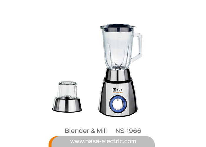 Blender and Mill NS-1966 Power 300 W (Max lock power 800 W) Stainless steel body Glass blender jar with 1.5 L capacity 2 speeds with pulse function Safety lock Anti- slip feet