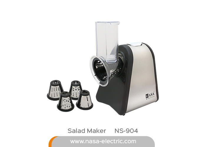 Salad maker Model NS-904 Power of 200w Powerful and quiet engine Stainless steel body Stainless steel blades Chopping and grating a variety of fruits and vegetables Input hole with large diameter Different blades for different shapes