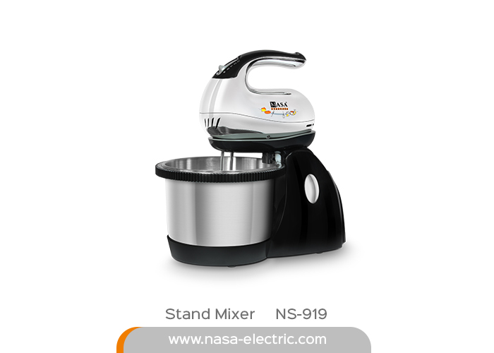 Rotatory stand mixer NS-919 Rotatory Stand Mixer NS-919 Power 130 W (Max lock power 350 W) Plastic body with chrome coating Stainless steel bowl with 3 L capacity 3 speeds Mixing & dough whisks with chrome coating Anti-slip feet