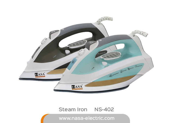 Steam Iron Model NS-402 2200 w power, 300 cc capacity Self clean button Two color: black and green Ceramic soleplate Auto shut-off function