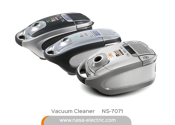 Vacuum Cleaner Model NS-7071 2400 w power Speed control power trough PCB Washable heap filter + cloth dust bag Telescopic stainless steel tube & flexable hose Floor brush + 2 pasmall brushes 360 ̊ performance on coupling & hose Exclusive design