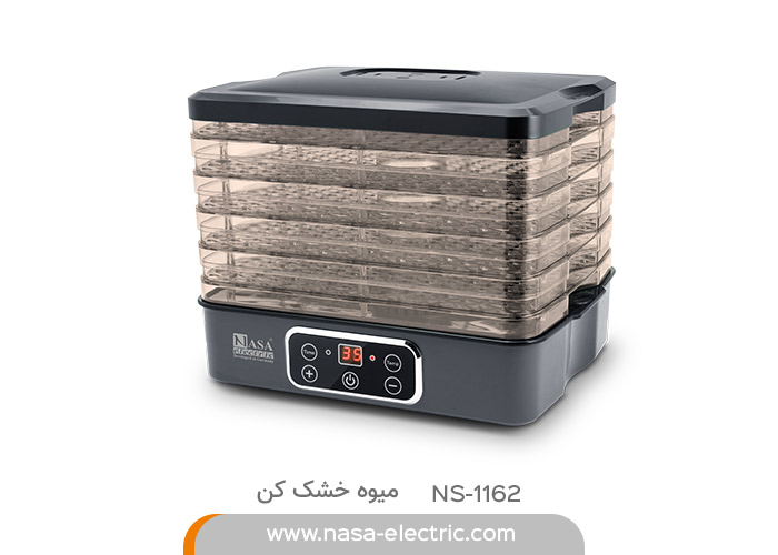 میوه خشک کن NS-1162 یکی از دستگاههای کاربردی برای خشک کردن میوه و سبزیجات است. برخورداری از 5 سینی یا طبقه متحرک در این میوه خشک کن قابلیت نگهداری حجم زیادی از اقلام و سایر مواد غذایی را فراهم نموده است. این 5 طبقه از جنس پلاستیک شفاف بوده و به راحتی میتوان از وضعیت و میزان خشک شدن مواد داخل سینی اطلاع پیدا کرد. مشکب بودن سینی به گردش هوای راحت و یکنواخت در تمام طبقات کمک میکند، به این صورت که مواد پخش شده در سینیها به یک اندازه خشک شود. بر روی این طبقات درپوشی از جنس پلاستیک قرار گرفته، که دارای دریچههایی نیز میباشد. این دریچهها جهت تخلیه نمودن بخار اضافی تعبیه شدهاند و به خشک شدن سریعتر و اصولیتر میوه کمک مینمایند.