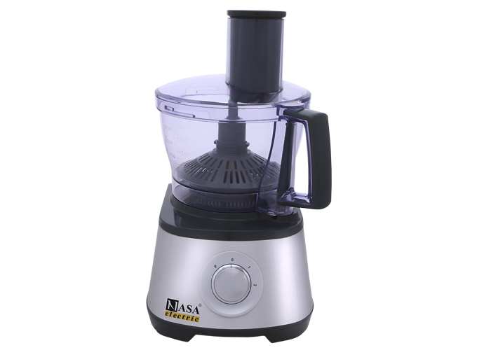 غذاساز ناسا الکتریک مدل NS-623 با حداکثر توان 1000 وات و طراحی شیک و زیبا به راحتی و در کمترین زمان مواد غذایی مختلف را به شکل دلخواه شما آماده می نماید. علاوه بر این دارای عملکردهای خمیر زدن، آب گیری انواع مرکبات، خرد کردن، رنده کردن و یخ زدایی می باشد. دهانه ورودی بزرگ این دستگاه امکان قرار دادن مرکبات و صیفی جات بدون نیاز به برش اولیه را به آسانی فراهم می نماید.
