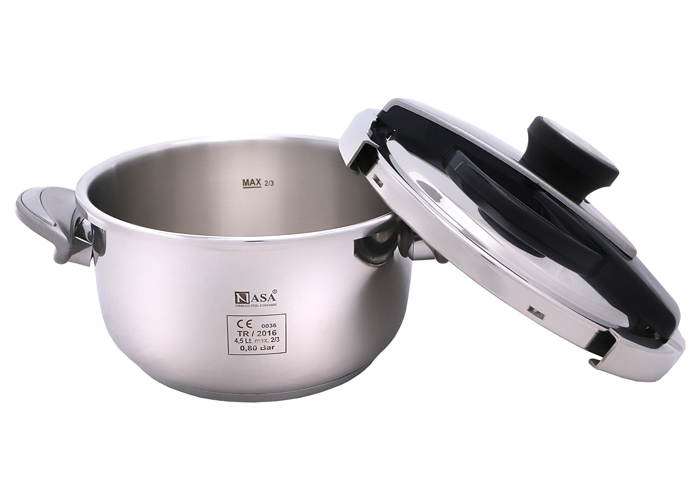 زودپز دوقلوی روگازی ناسا الکتریک مدل NS-220 مجموعهای کاربردی با طراحی بسیار زیبا، دارای استانداردهای اروپا و ساخت کشور ترکیه میباشد که برای هر کدبانو و آشپزخانهای لازم و ضروری است. این مجموعه شامل دو قابلمه با ظرفیت 4.5 و 6 لیتری از جنس استیل ضد زنگ با ترکیب 10.18 نیکل و کروم است که ظاهری صیقلی و آینهای دارند، و این امکان را به شما میدهد که برای 4 تا 10 نفر به راحتی غذایی خوشمزه و لذیذی بپزید.