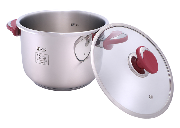 بدنه مدرج داخلی زودپز دوقلوی روگازی ناساالکتریک مدل NS-220 میزان حداقل و حداکثر آب داخل زودپز را مشخص میکند که می توان بر اساس آن میزان آب داخل زودپز را تنظیم نمود. همچنین این محصول دارای سیستم محافظت در برابر انفجار و ایمنی بالا میباشد.
