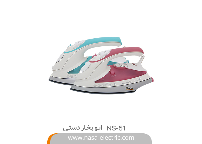 اتو بخار دستی ناسا الکتریک مدل NS-51 دارای سیستم ضد رسوب و سیستم خودشوئی خودکار بوده و هر چند وقت یک بار (10 تا 15 روز)، با فشردن دکمه مربوطه رسوب های ایجاد شده در دستگاه را پاکسازی کنید و با کمک سیستم ضد چکه می توانید پارچه های ظریف تر را بدون خراب شدن و لک شدن اطو نمایید. از دیگر ویژگی های این دستگاه قابلیت اتو کشیدن عمودی (پرده ها، لباس های آویزان و ...)، می باشد. سیم برق اتو دارای قابلیت چرخشی 360 درجه است که کار با این وسیله را آسان تر می نماید. اطو بخار دستی ناسا الکتریک مدل NS-51 در سه رنگ صورتی، فیروزه ای و آبی عرضه می شود.