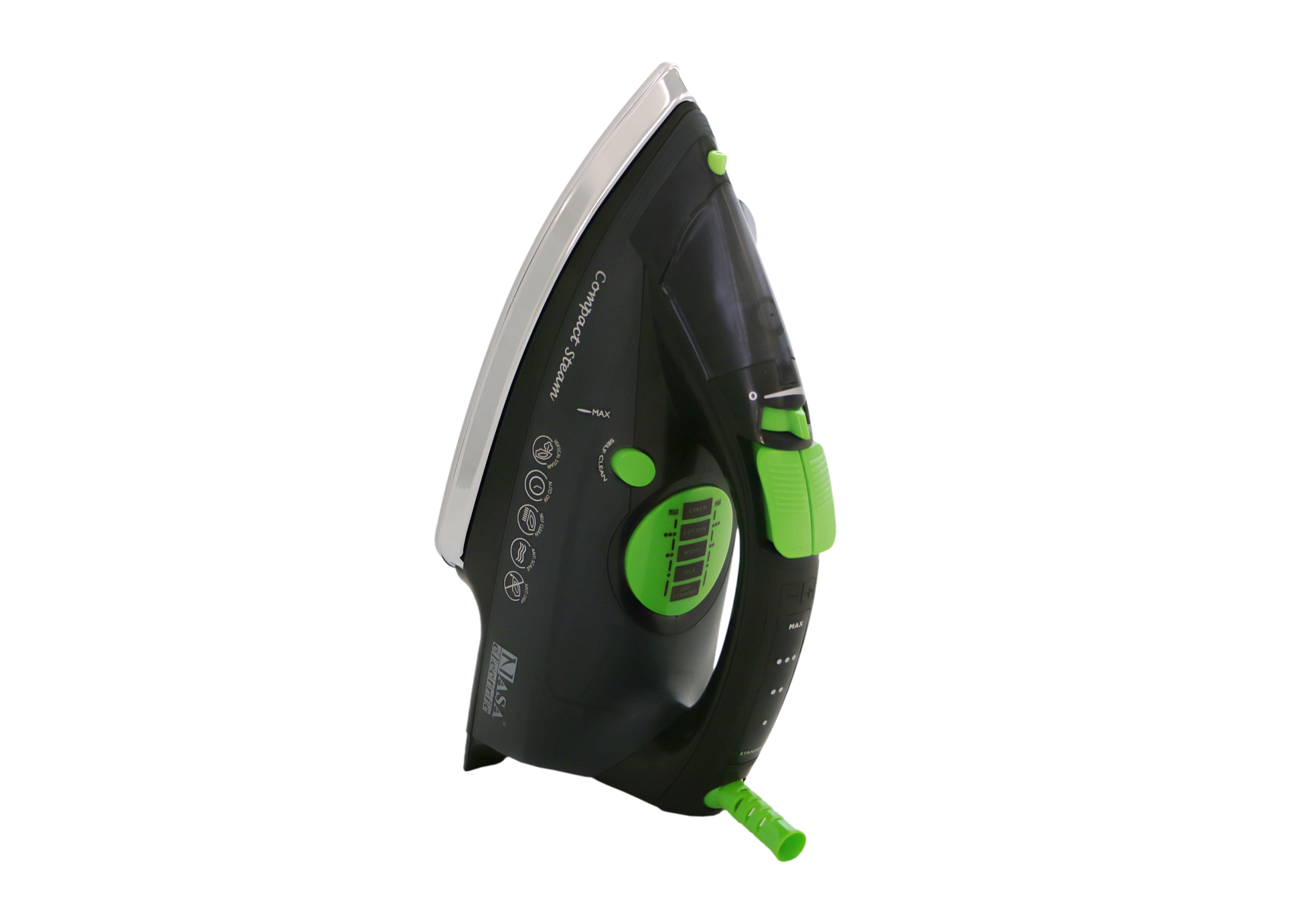 در قسمت زیر دسته اتو مدل NS-53 یک صفحه نمایش LED قرار دارد که میزان دما و تنظیمات نوع الیاف پارچه را نمایش میدهد. این دستگاه دارای کلیدهای مخصوص تنظیم درجه حرارت، کلید آبپاش، کلید ضدچکه و کلید شستوشوی خودکار است. این کلید برای شما امکان تنظیم درجه حرارت اتو را فراهم میکند که میتوان با استفاده از آن طبق نوع پارچه حرارت مورد نظر اعم از نوع خشک و درجههای مختلف بخاردهی را تنظیم کرد.