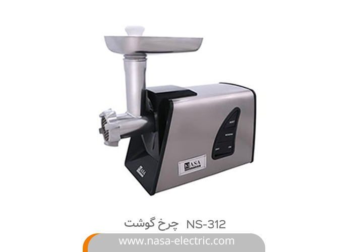 چرخ گوشت ناسا الکتریک مدل NS-312 با حداکثر توان 2200 وات محصولی با موتور قوی و کم صدا و در عین حال کاربردیست که قادر به چرخ کردن انواع مواد غذایی از قبیل گوشت، مرغ، ماهی و انواع سبزیجات می باشد. بدنه این محصول از جنس استیل می باشد. بر روی بدنه سه دکمه در کنار هم تعبیه شده است که با استفاده از دکمه روشن/خاموش می توان دستگاه را روشن کرد تا چرخ گوشت شروع به کار نماید.