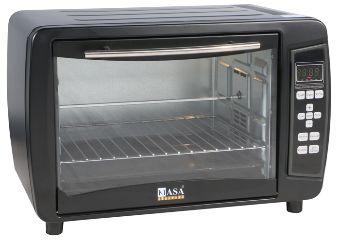 آون توستر ناسا الکتریک مدل NS-2036 با توان 1500وات با طراحی زیبا زینت بخش آشپزخانه شما خواهد شد. بدنه این محصول از جنس آلومینیوم محکم و درب شیشه ای از جنس پیرکس مقاوم در برابر ضربه می باشد و شما را قادر می سازد تا در منزل انواع غذاهای گوشتی، ماهی، پیتزا، شیرینی، سبزیجات، نان و ... را به طور سالم پخته و گریل نمایید. آون توستر ناسا الکتریک مدل NS-2036 محفظه ای با ظرفیت 36 لیتر همراه با جوجه گردان و سینی مخصوص دارد که می توان انواع مواد غذایی را گریل و کباب نمایید.