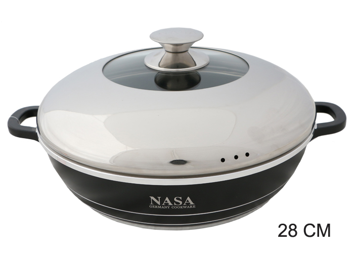 درپوش سرویس قابلمه و ماهی تابه ناسا 6024 ترکیبی از جنس پیرکس مقاوم در برابر ضربه و حرارت و همچنین استیل ضدزنگ ساخته شده است.