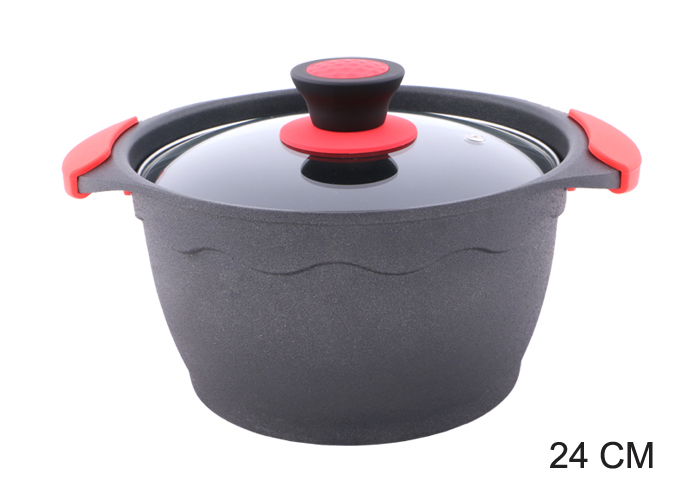 جنس دستگیرههای تمام اجزای سرویس از پلاستیک فشرده نسوز با روکش سیلیکون میباشد. دستگیرههای قرمز رنگ علاوه بر مقاومت بالا در برابر حرارت و شعله که داغ نمیشود، زیبایی منحصر به فردی را برای این محصول به ارمغان آورده است. دستههای سیلیکونی از کیفیت بالایی بهره میبرند و جنس نسوز و مقاوم آنها در مقابل حرارت نیز مقاوم بوده و مانع از انتقال گرما به دست خواهد شد.