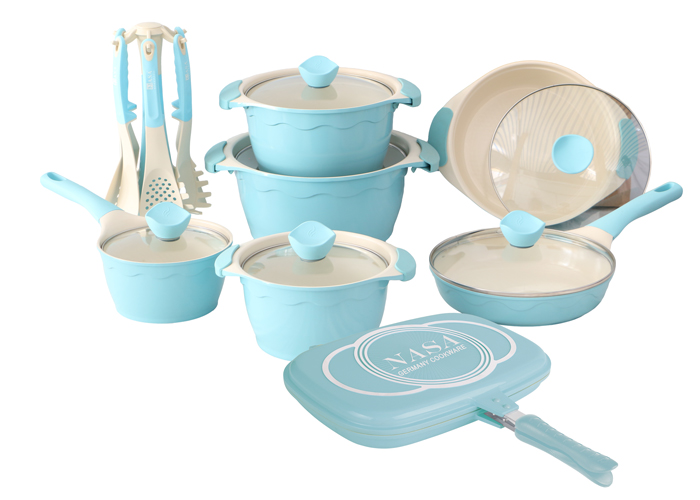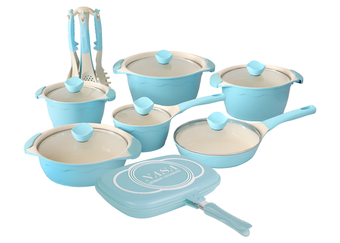 سرویس قابلمه سرامیکی مدل NS-6042 A,B,C با سه رنگ در رنگهای فیروزهای، کرم و صورتی یکی از بهترین مجموعههای کامل و کاربردی با طراحی بسیار زیبا و امروزی میباشد که از کیفیت بسیار بالایی برخوردار بوده و امکان پخت و پز انواع مواد غذایی را برای شما فراهم میآورد. این مجموعه از جنس آلومینیوم 5 لایه بوده که موجب انتشار سریع و یکنواخت حرارت در تمامی سطح ظرف میگردد و با داشتن پوشش سرامیکی مرغوب و با دوام در برابر ساییدگی و خش، موجب سهولت در استفاده و تمیز کردن آن خواهد بود.