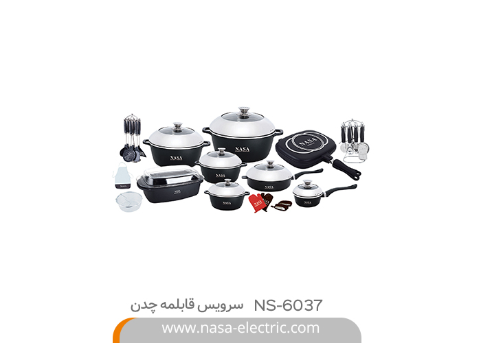 سرویس قابلمه چدن NS-6037 قابلمه های سایز20-24-32-36 شیر جوش-ماهی تابه سردار ماهی تابه دو طرف 32cm درب مرغ خوری از جنس پیرکس32cm ابزارآلات و کف گیر، ملاقه