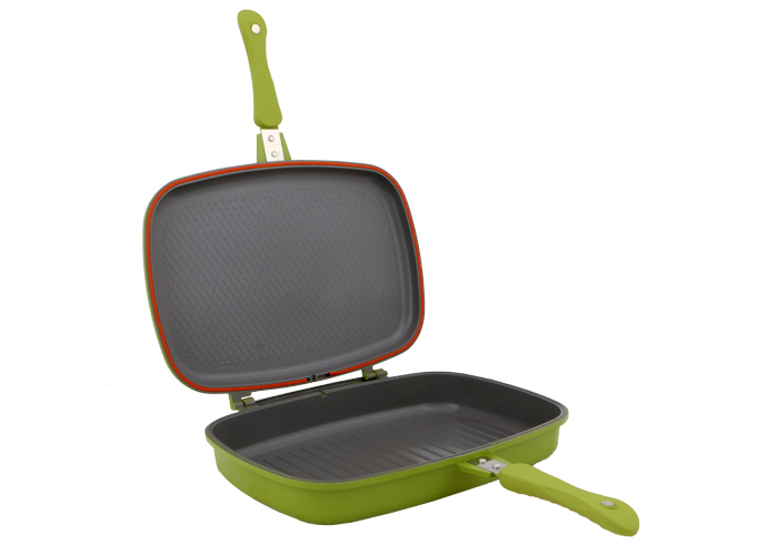 دستگیرههای قابلمه هم جنس بدنه بوده و از همان آلومنیوم چند لایه با روکش سرامیک ساخته شده است؛ اما دستگیره بلند تابه و شیرجوش از جنس پلاستیک با روکش سیلیکون میباشد، که در برابر گرما مقاومت بالایی دارد.