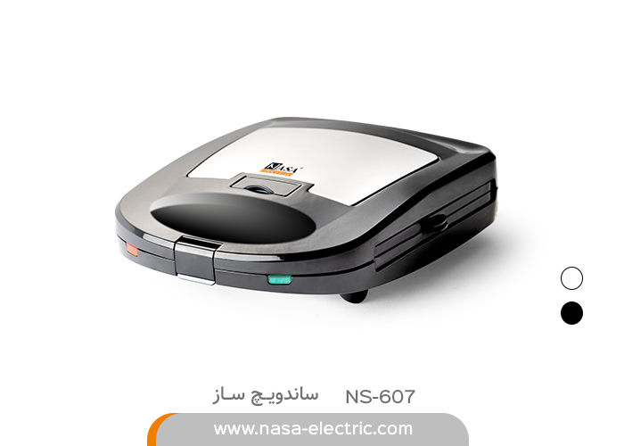 ساندویچ ساز ناسا الکتریک NS-607 یکی از دستگاههای کاربردی و با کیفیتی است که برای درست کردن ساندویچ استفاده میشود. این ساندویچ ساز در دو رنگ محبوب و پر طرفدار مشکی و سفید تولید شده است. همچنین بدنه این محصول از پلاستیک با کیفیت ABS میباشد، که علاوه بر استحکام بالا از جذابیت ظاهری خاصی هم بهره میبرد. این محصول ساده و کاربردی وزن و ابعاد بسیار کوچک و جمع و جوری دارد و به راحتی میتوان از آن استفاده کرد. این دستگاه از دو قطعه تشکیل شده است که به هم وصل شدهاند. مواد غذایی که قرار است کباب شوند یا ساندویچ شوند در بین این دو صفحه قرار میگیرند.