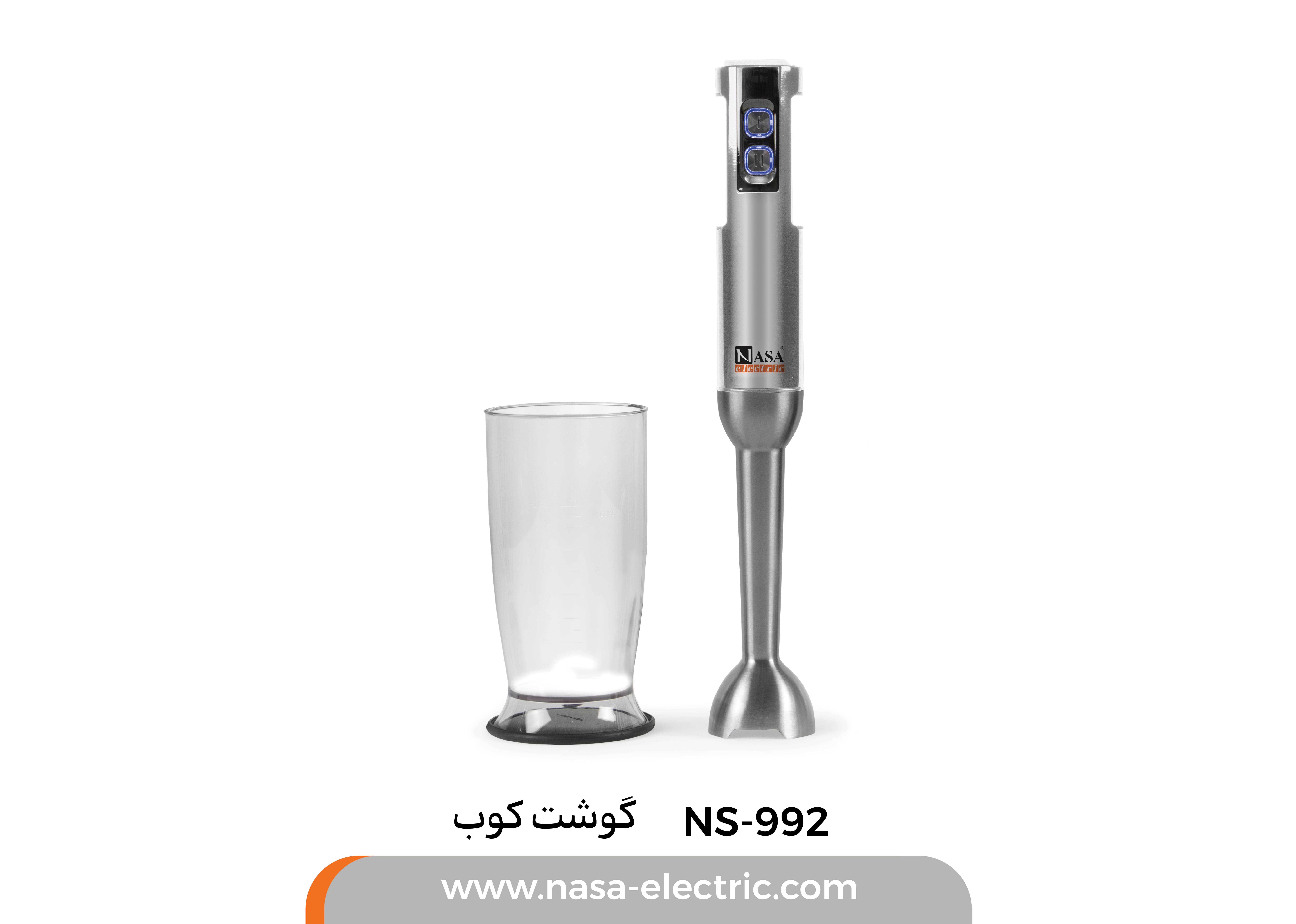 گوشت کوب ناسا الکتریک مدل NS-992 محصولی است با کیفیت و کاربردی، که در نهایت سادگی ساخته شده است. این گوشت کوب برقی تنها از یک دسته و میله گوشت کوب و یک ظرف مخصوص تشکیل شده است. بدنه یا دسته این گوشت کوب از جنس آلومینیوم آنادایز بوده و دارای رنگ مشکی میباشد. بر روی دسته دو دکمه برای عملکرد روشن و خاموش کردن و سرعت حداکثر max در نظر گرفته شده است، این گوشتکوب قابلیت تنظیم سرعت را نیز دارد، که از طریق پیچ ولومی بر بالای دسته میتوان سرعت را تغییر داد.