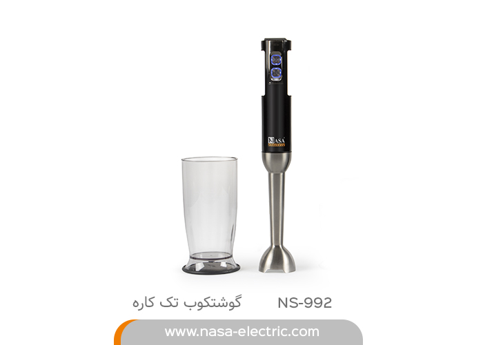 که بسته به ماده غذایی و میزان سختی آنها دارد. ساختار و طراحی آرگونومیک دسته باعث شده زمان زیادی با گوشت کوب کار کرد، بدون اینکه احساس خستگی کرد. از این گوشتکوب تک کار میتوانید برای له کردن و پوره کردن مواد غذایی مختلف استفاده نمود. تیغههای به کار رفته در این گوشتکوب از جنس استیل ضد زنگ بوده و در مقابل آب و رطوبت موجود در مواد غذایی مقاومت بالایی داشته و با مشکل زنگ زدگی و فرسایش مواجه نخواهد شد. تیغههای گوشتکوب تک کاره NS-992 ناسا الکتریک از نوع چهار پره بوده و بصورت پرسی به پایه وصل شدهاند. توان مصرفی 600 وات در کنار این همه ویژگی مثبت از این محصول یک دستگاه با کیفیت و خوش قیمت ساختهاند.